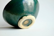 銅釉による青みがかった緑。よく見ると釉の流れるような模様が見えます。